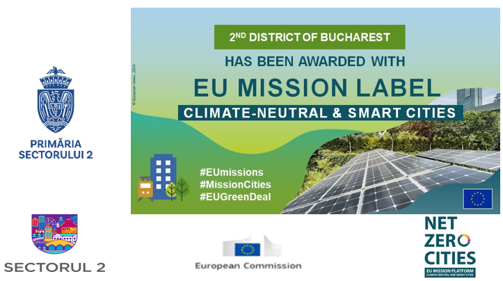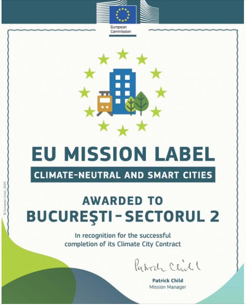 În data de 08.10.2024, Sectorul 2 al Municipiului Bucureşti a primit din partea Comisiei Europene Eticheta Misiunii UE în cadrul Misiunii „Orașe inteligente și neutre din punct de vedere al impactului asupra climei- 100 de orașe neutre din punct de vedere al impactului asupra climei până în 2030”.