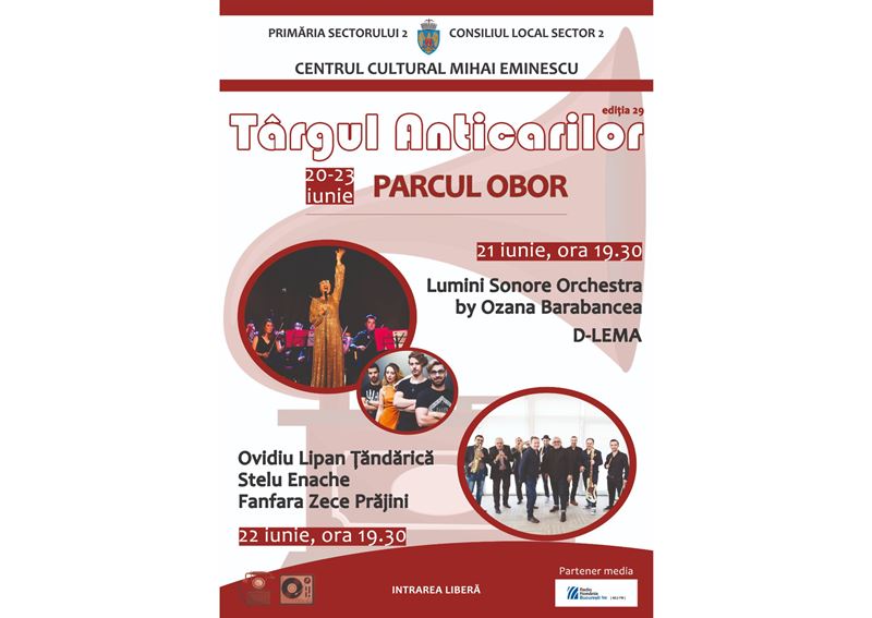 Primăria Sectorului 2, prin Centrul Cultural “Mihai Eminescu”, organizează în perioada 20-23 iunie 2019 cea de-a 29-a ediție a Târgului Anticarilor, eveniment care se va desfășura în Parcul Obor din București.