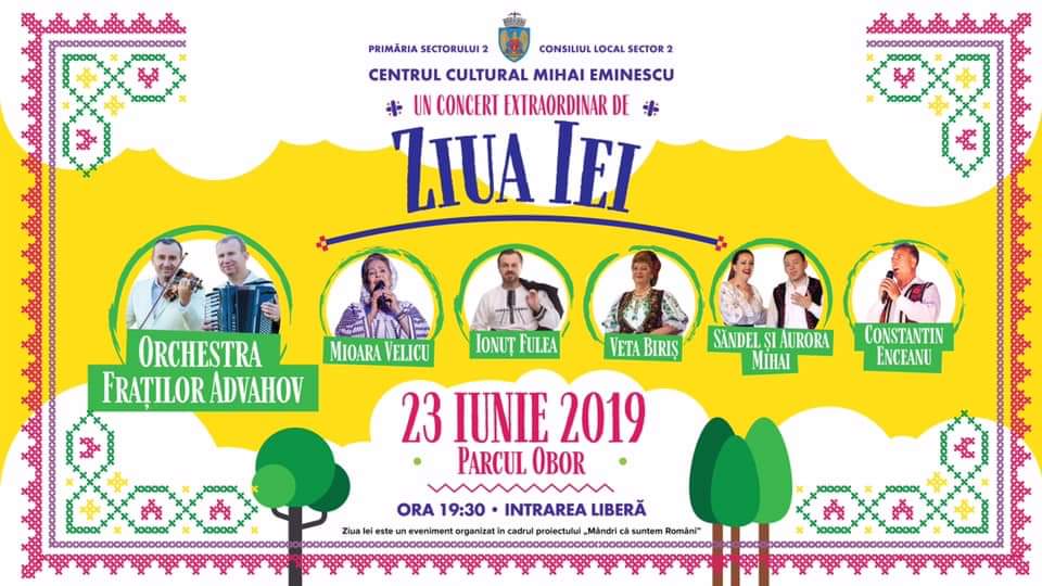 Primăria Sectorului 2, prin Centrul Cultural Mihai Eminescu, organizează în data de 23 iunie 2019 evenimentul “Mândri că suntem români”. Acesta reunește o suită de momente artistice dedicate Zilei Universale a Iei și Zilei Drapelului Național, care se vor desfășura în Parcul Obor și în cadrul Galeriei 2ART a Primăriei Sectorului 2.
