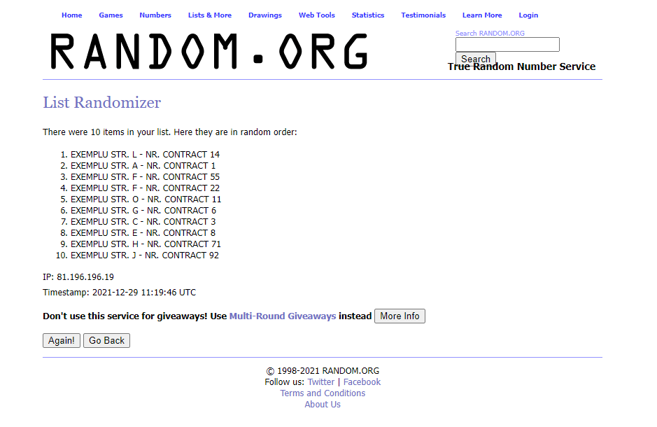 Cele 2 extrageri (pentru asociațiile de proprietari și persoane fizice - case) se vor face utilizând platforma https://www.random.org/